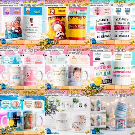 Plantillas Bautizo Tazas Primera Comunión Editables Plantillas Bautizo Tazas Primera Comunión Editables, ideal para sublimar tus tazas, listas para imprimir