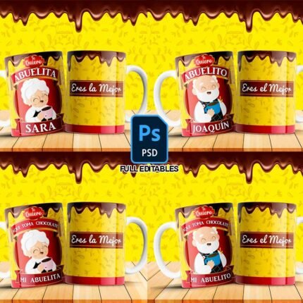Plantilla chocolate abuelitos para tazas Plantilla chocolate abuelitos para tazas, ideal para diseñadores, estampadores, emprendedores y creativos que buscan agregar