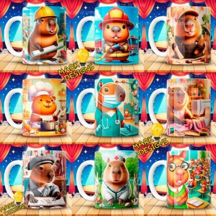 Profesiones Capibaras Plantillas Tazas Profesiones Capibaras Plantillas Tazas, ideal para sublimar tus tazas, listas para imprimir y sublimar. INCLUYE: 20