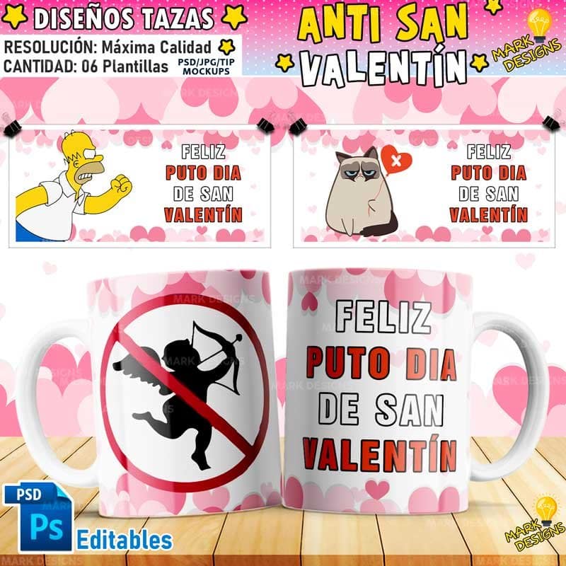 ►Anti San Valentín Tazas Diseños Editables, Etc. Plantillas Premium◄