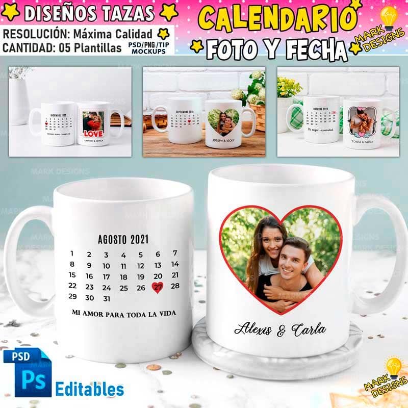 ►Calendario Foto Tazas Diseños Editables con Fechas, Etc. Plantillas Premium◄