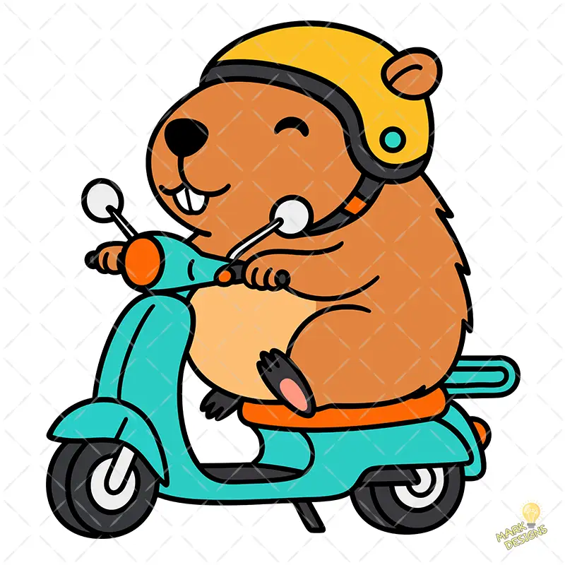 Capybara on Scooter Vector – Carpincho en Motoneta Kawaii con Casco