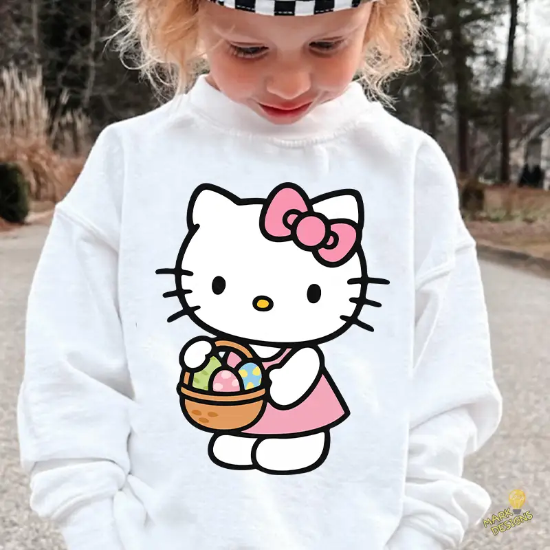 Hello Kitty Easter Vector – Gatita con Canasta de Huevos y Vestido Rosa