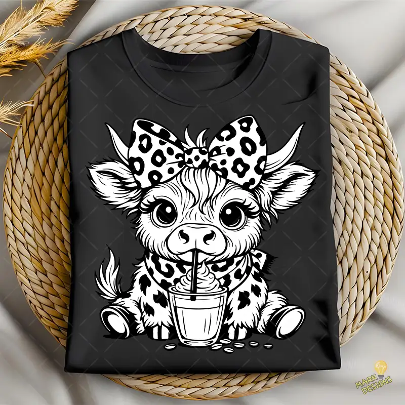 Vaca Escocesa SVG – Clipart de Bebida Helada y Leopardo para Camisetas