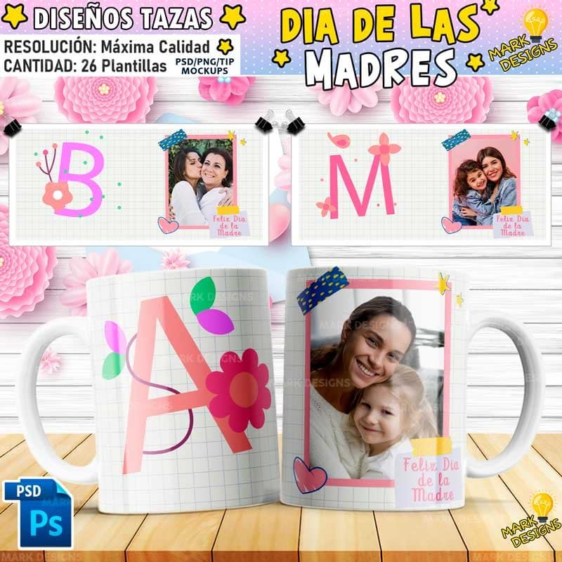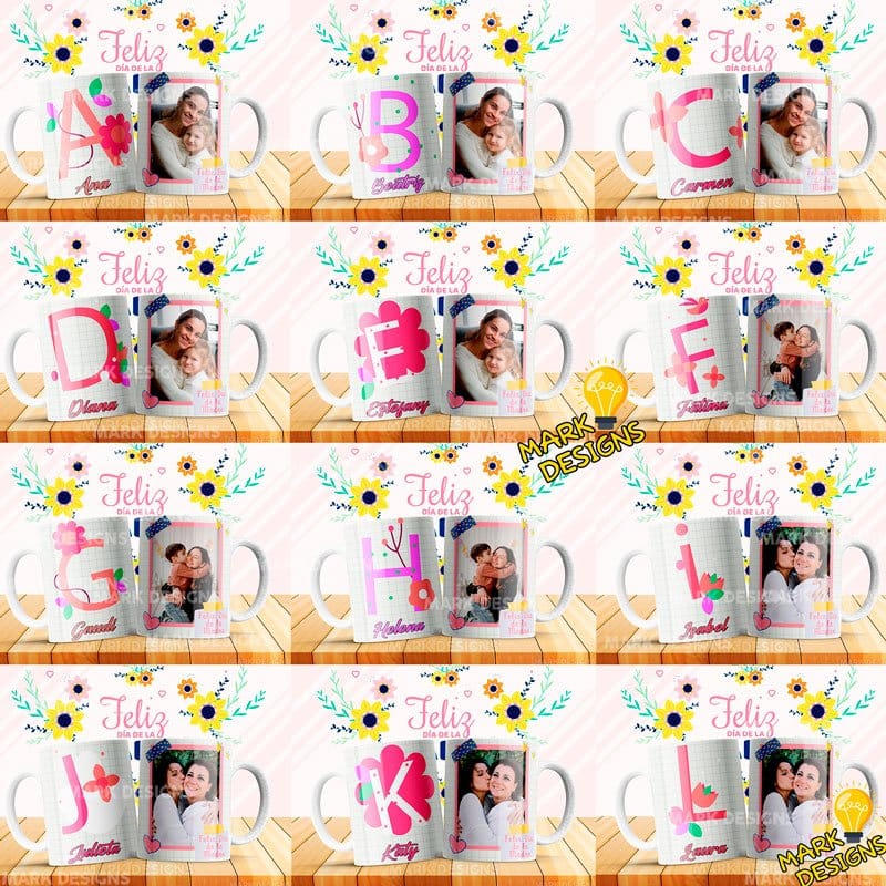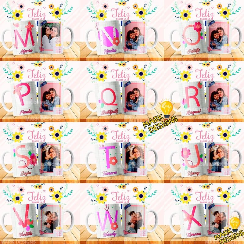 Haz que el día de las Madres sea aún mas especial con nuestras plantillas con iniciales y fotos para tazas por el día de las madres. Nuestros diseños de Alfabeto por el día de las madres para tazas con fotos están listos para sublimar. Empieza a descargar este hermoso pack de diseños y empieza a personalizar tus tazas por el día de las madres. Diseños Abecedario Mamá Tazas.