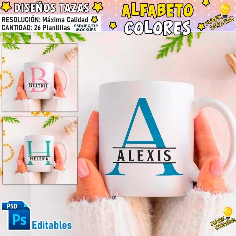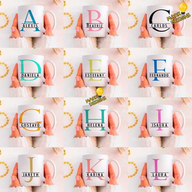 Diseños Alfabeto para Tazas, puede cambiarle el color a las letras, ideal para sublimar tus tazas, listas para imprimir y sublimar.