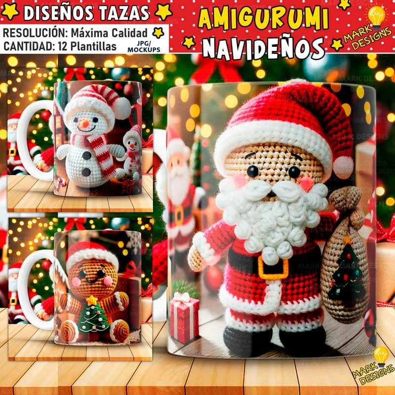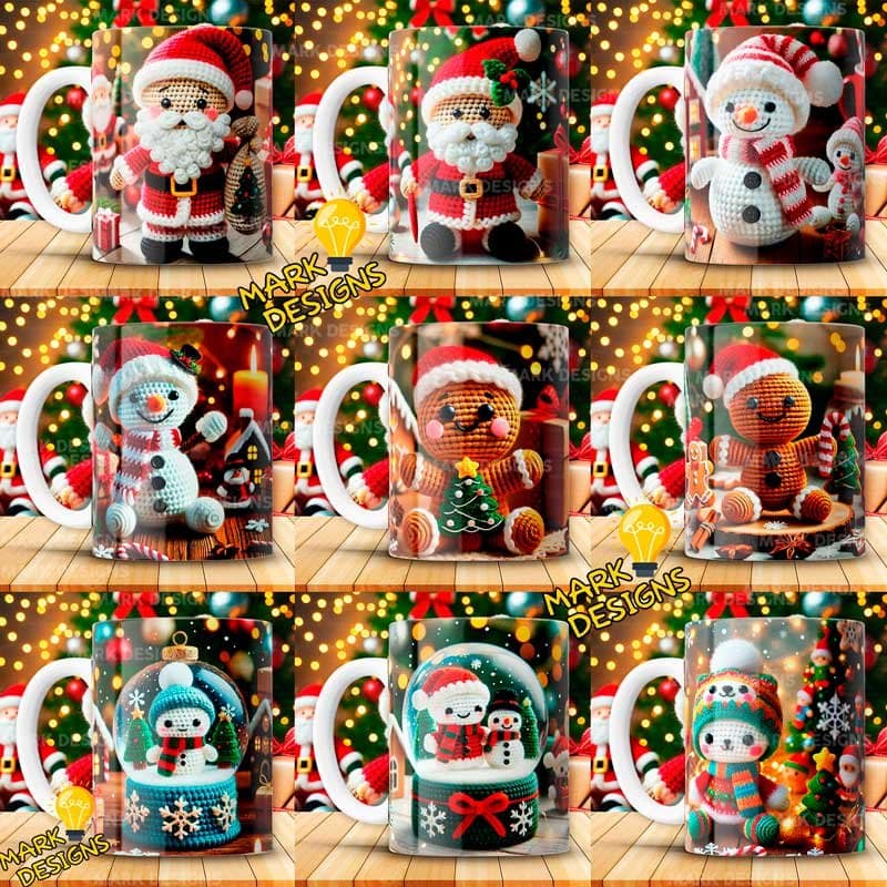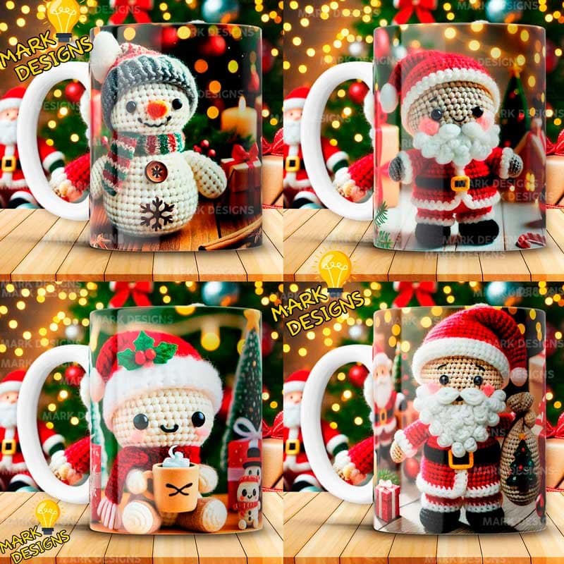 Diseños Amigurumi Navideños para Tazas, ideal para estampar tus tazas, además están listas para imprimir y sublimar.