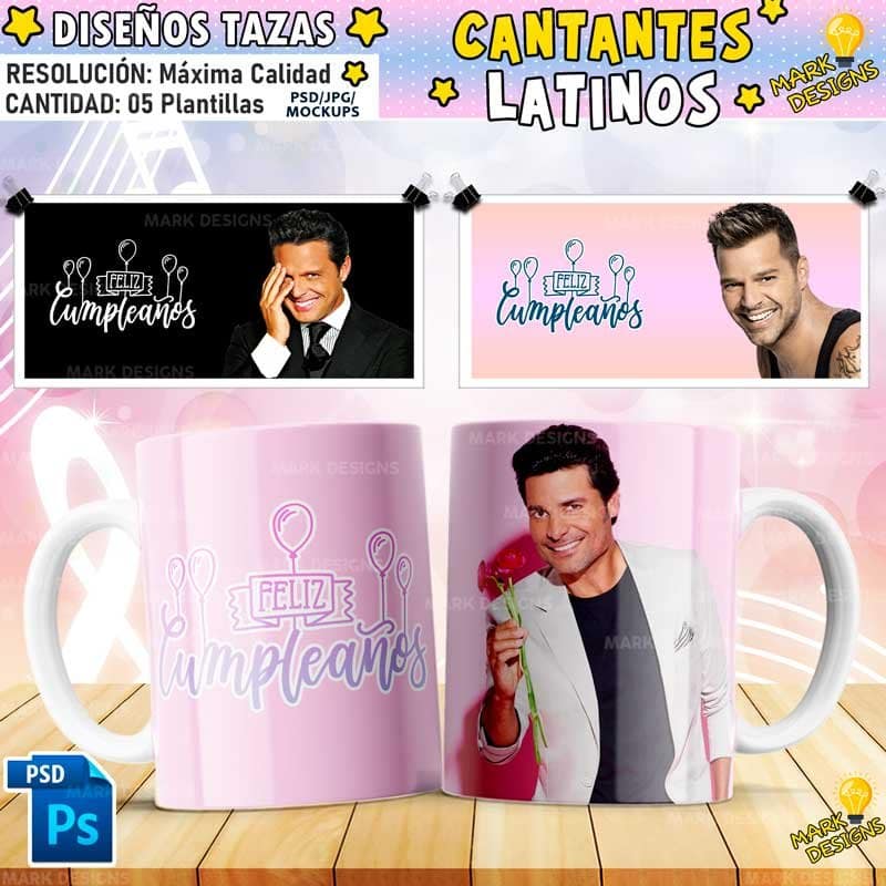 ►Diseños de Tazas Cantantes Latinos Feliz Cumpleaños, Etc. Plantillas Premium◄
