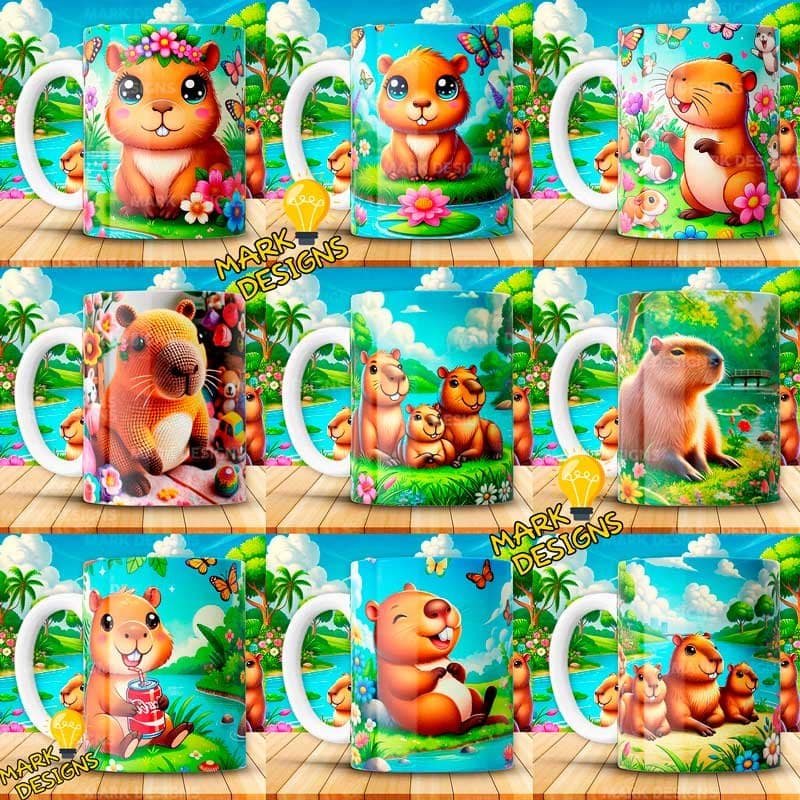 Diseños Capibara para Tazas, Etc. Plantillas Capibara para sublimar tazas