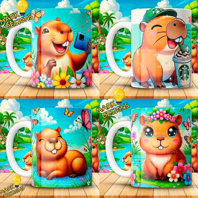 Diseños Capibara para Tazas, ideal para estampar tus tazas, además están listas para imprimir y sublimar.