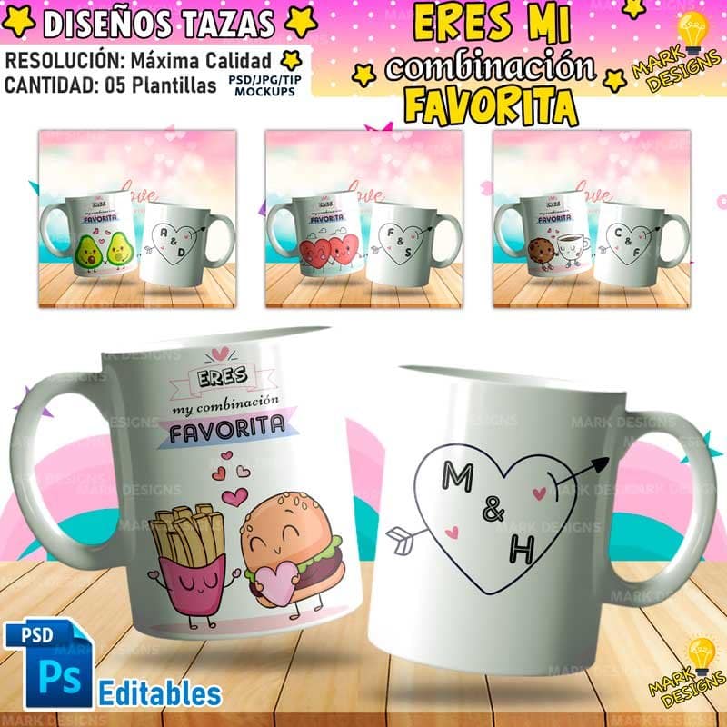 ►Diseños de Tazas eres mi Combinación Favorita, San Valentín, Etc. Plantillas Premium◄