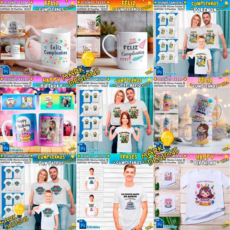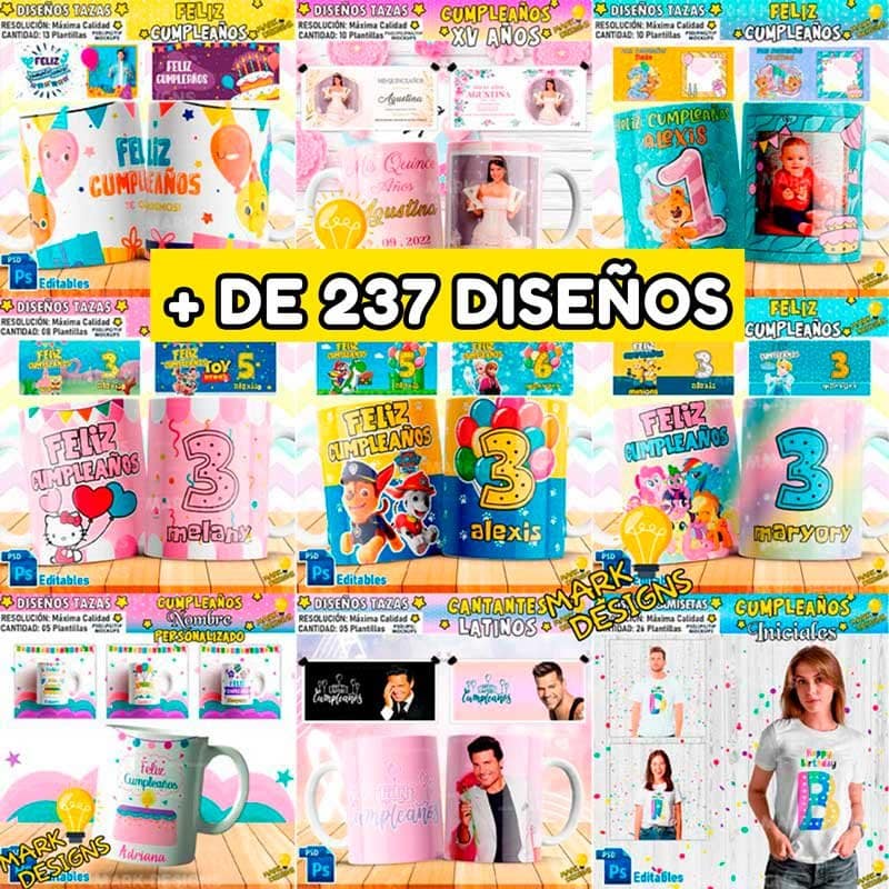 - Contenido: 237 Diseños de Cumpleaños para sublimar.