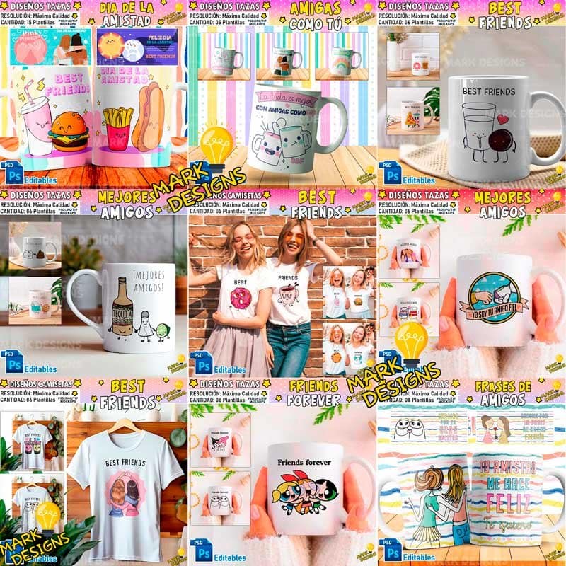 Packs de Diseños día de la Amistad, mas de 63 archivos, pueden ser utilizados en una gran variedad de impresiones, incluyendo: Pósters, Camisetas, Tarjetas de invitación, Stickers y pegatinas, Decoración para cumpleaños, Impresiones de pared, Tazas y tumbler, Sublimación, Merchandising, etc. En este mega pack del día del amigo encontrarás plantillas de amistad, imágenes de amistad, plantillas para sublimar tazas día del amigo, etc.