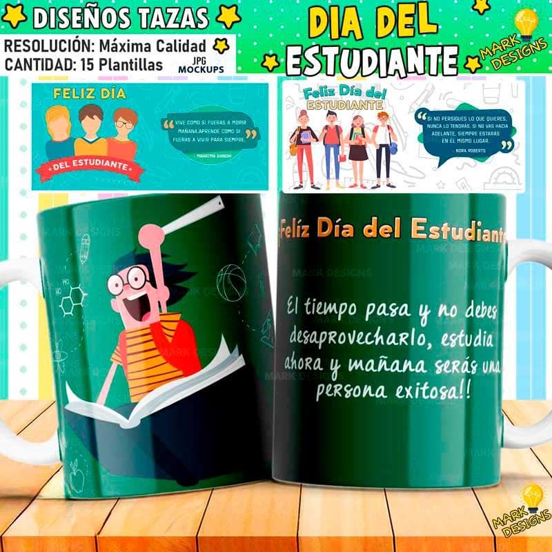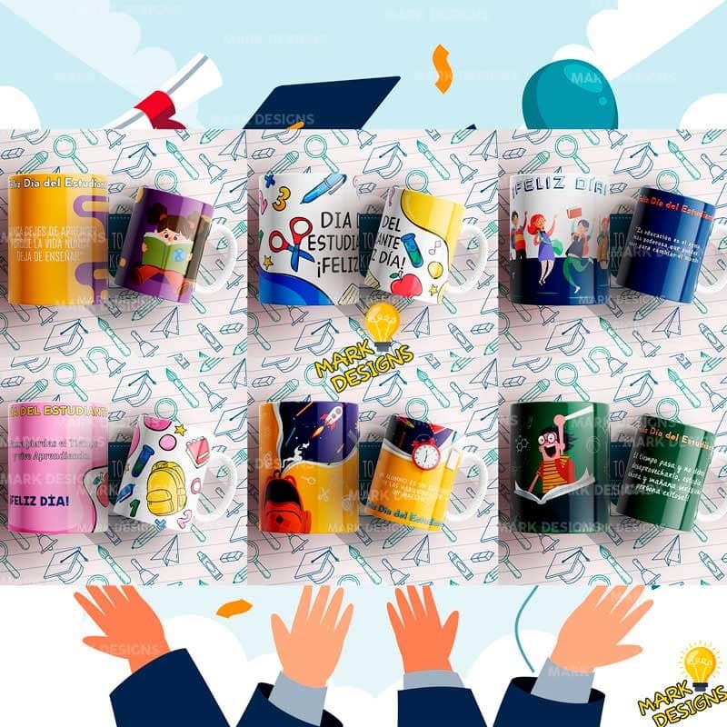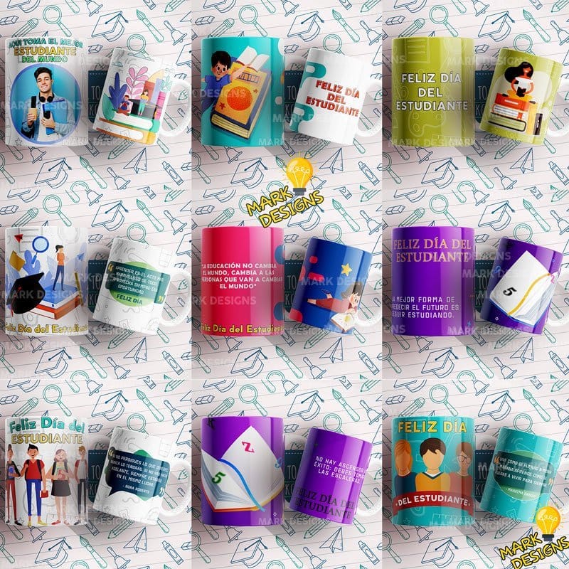 Diseños día del Estudiante para Tazas, ideal para sublimar tus tazas, listas para imprimir y sublimar.