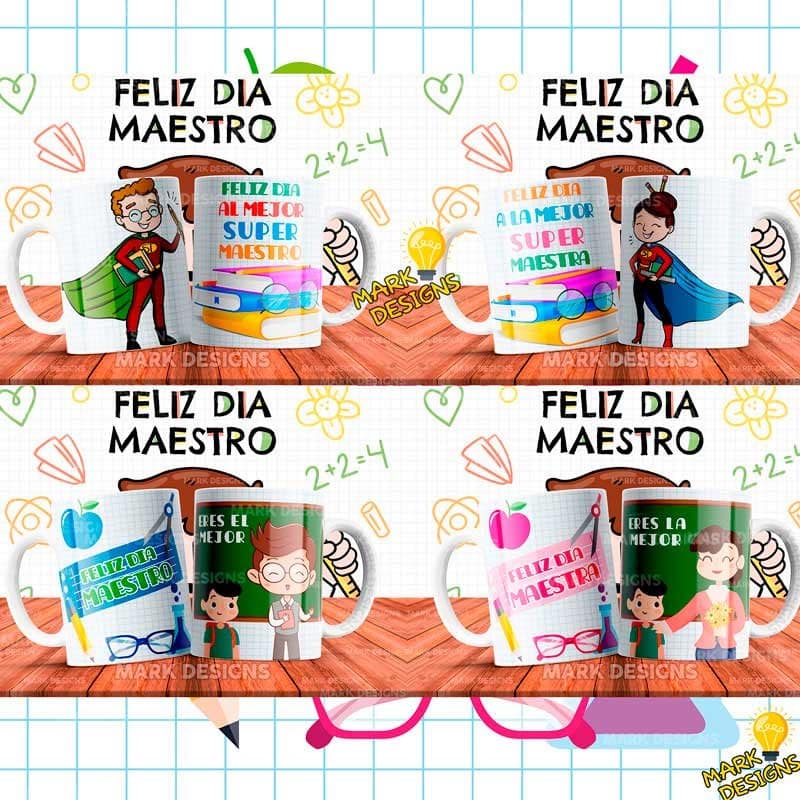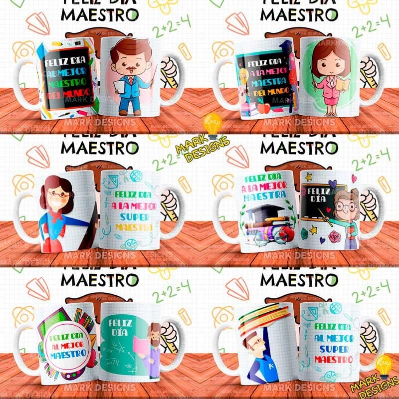 Diseños día del Maestro para Tazas, ideal para sublimar tus tazas, listas para imprimir y sublimar.
