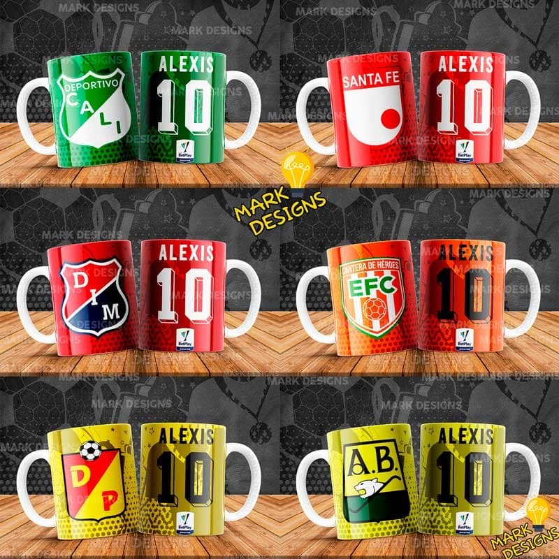 Diseños Fútbol Colombiano para Tazas ideal para poner nombres personalizados, listas para imprimir y sublimar.