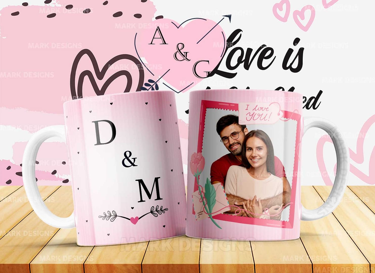 ►Diseños de Tazas Iniciales con Foto Parejas, San Valentín, Etc. Plantillas Premium◄