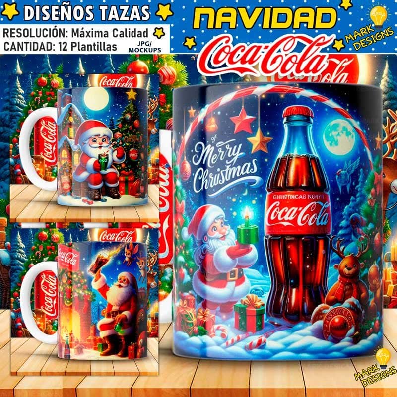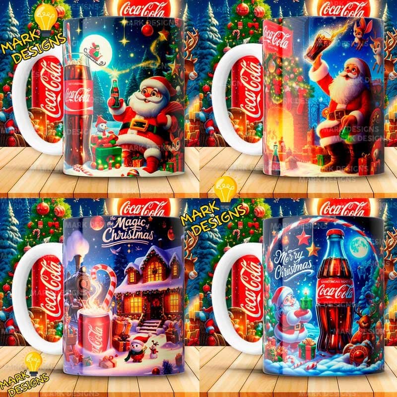Diseños Navidad Coca Cola Tazas, ideal para estampar tus tazas, además están listas para imprimir y sublimar.