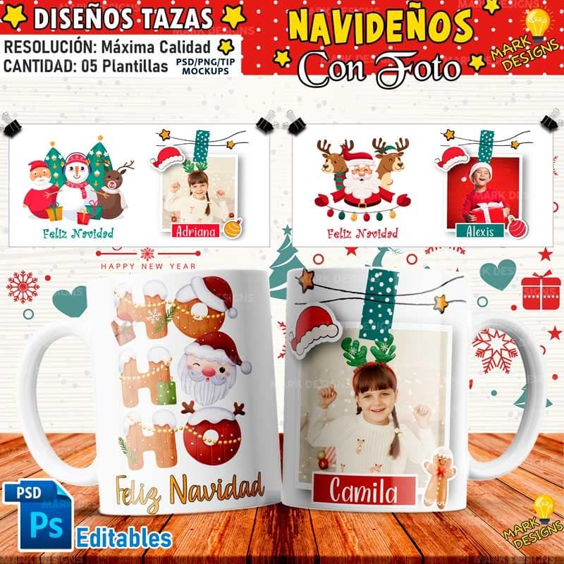 Diseños Navideños con Foto y Nombre Personalizado, ideal para sublimar tus tazas, listas para imprimir y sublimar.