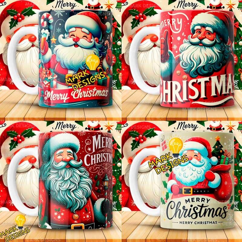 Diseños Navideños Papa Noel Tazas, ideal para estampar tus tazas, además están listas para imprimir y sublimar.