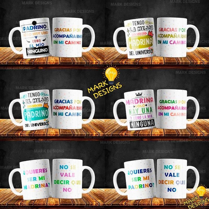 Diseños Padrino y Madrina Tazas, ideal para sublimar tus tazas, listas para imprimir y sublimar.