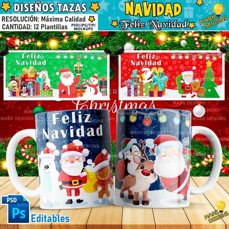 Diseños para Sublimar Tazas de Navidad, ideal para sublimar tus tazas, listas para imprimir y sublimar.