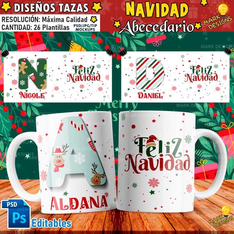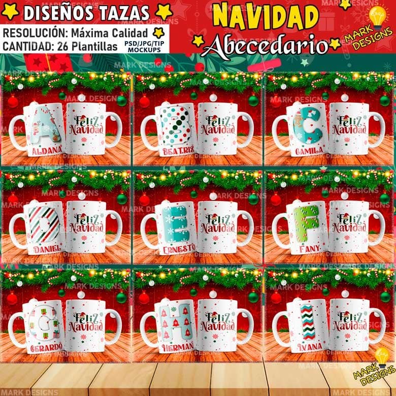 ►Diseños de Tazas Navideños, Feliz Navidad, Abecedario Navideño, Etc. Plantillas Premium◄
