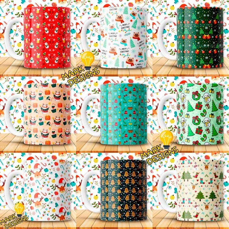 Diseños Patrones Navideños Tazas, ideal para estampar tus tazas, además están listas para imprimir y sublimar.