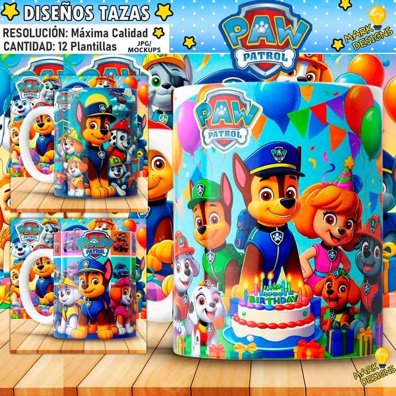 Plantillas Paw Patrol para Tazas, aquí encontrarás los mejores diseños del mercado, además están realizados para que tus productos personalizados queden perfectos y con un acabado brillante. Paw Patrol Tazas. Puede seguirnos en nuestras distintas redes sociales y no perderse de los diseños exclusivos y diarios que tenemos para ti Facebook  Instagram  Pinterest  También puede escribirme al WhatsApp si tiene alguna otra duda o consulta acerca de nuestros diseños, vectores e imágenes en 4k.