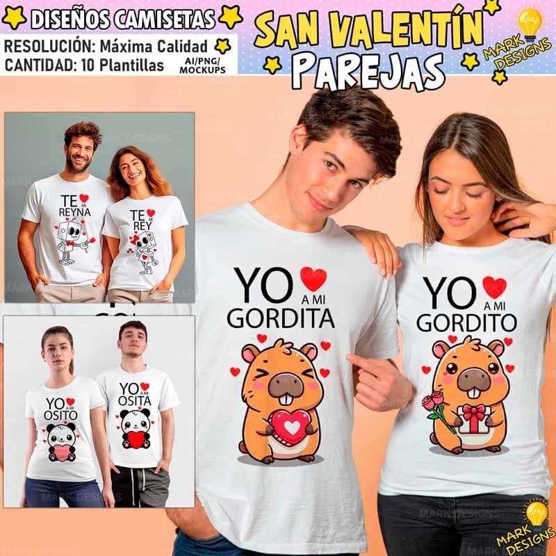 Este pack de Diseños para parejas de San Valentín esta Listo para Imprimir y Sublimar. Estos diseños para camisetas esta dedicado a las personas que se dedican a la sublimación, personalización de camisetas y/o están por empezar en el negocio de la sublimación. Además no hace falta ser un experto en edición; ya que solo tiene que Descargar, Imprimir y Sublimar. Diseños Exclusivos y en Altísima Calidad.