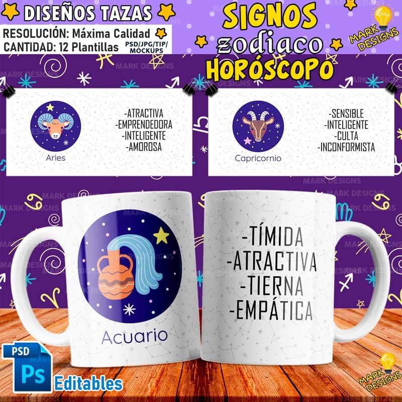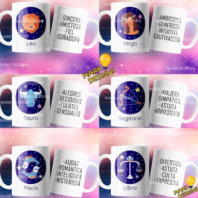 Diseños Signos Horóscopo Tazas, ideal para sublimar tus tazas, listas para imprimir y sublimar.