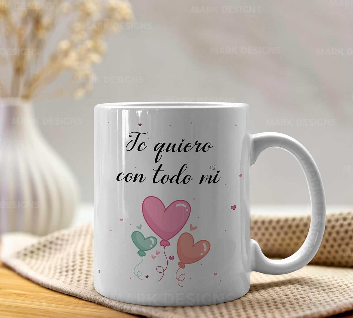 Diseños Te quiero con todo mi Corazón, ideal para sublimar tus tazas, listas para imprimir y sublimar.