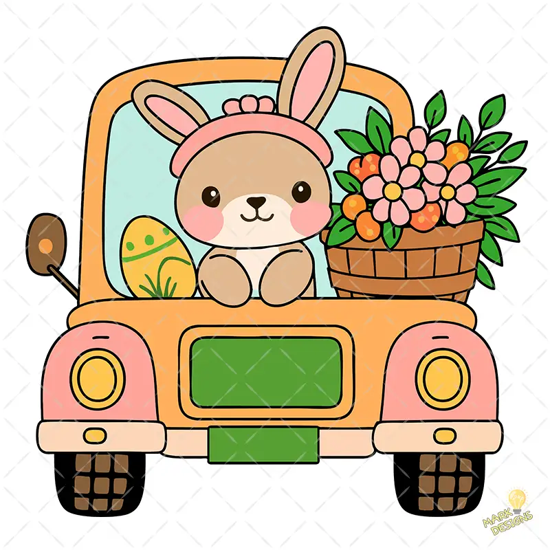 Sé el primero en valorar “Easter Bunny Jeep Vector – Conejita en Coche con Flores y Huevos de Pascua”