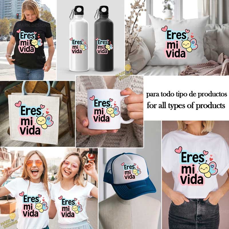 Eres mi vida PNG ai, ideal para utilizar en tus proyectos o sublimación de tazas, camisetas, cojines, Tumblr, gorras, bolsas, termos, llaveros, mousepads, agendas, tarjetas de invitación, botellas, fundas, cuadros, posters, stickers, DTF, etc.! además están listas para descargar, imprimir y personalizar.