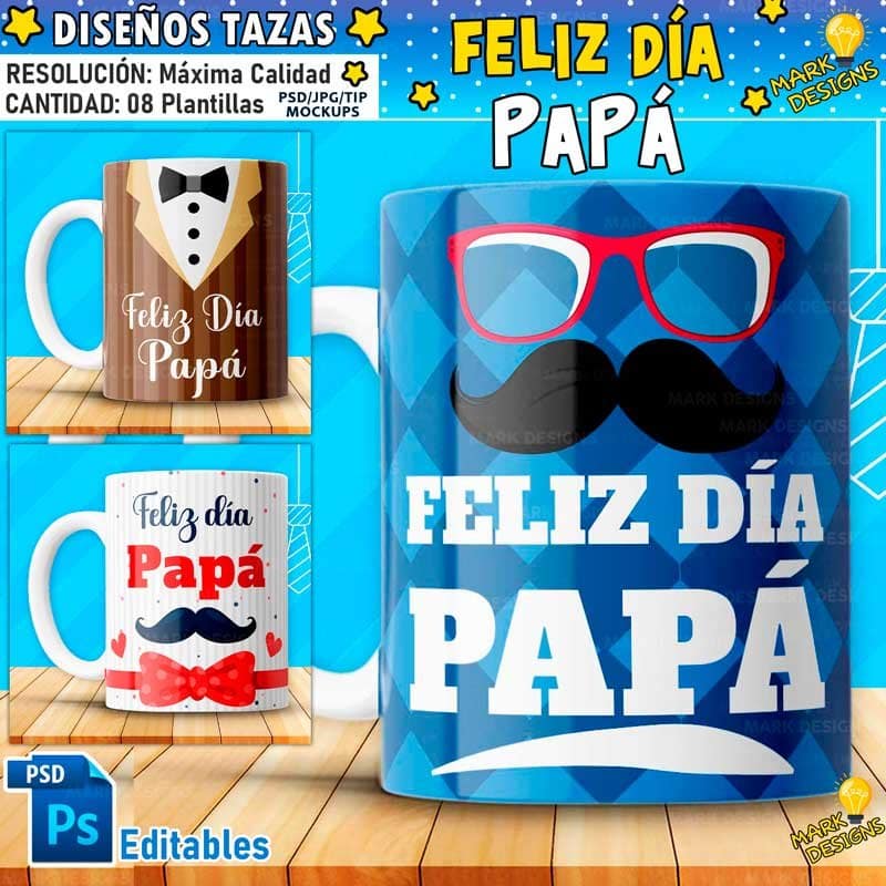 - Contenido: 08 plantillas Feliz día Papá para tazas.