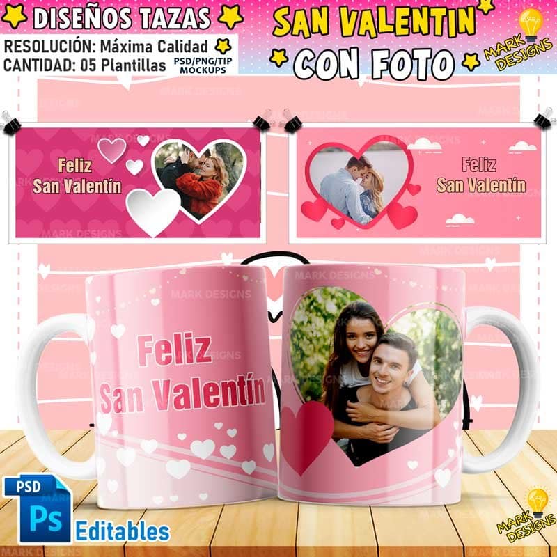 Feliz San Valentín Diseños Tazas con Foto, ideal para sublimar tus tazas, listas para imprimir y sublimar.