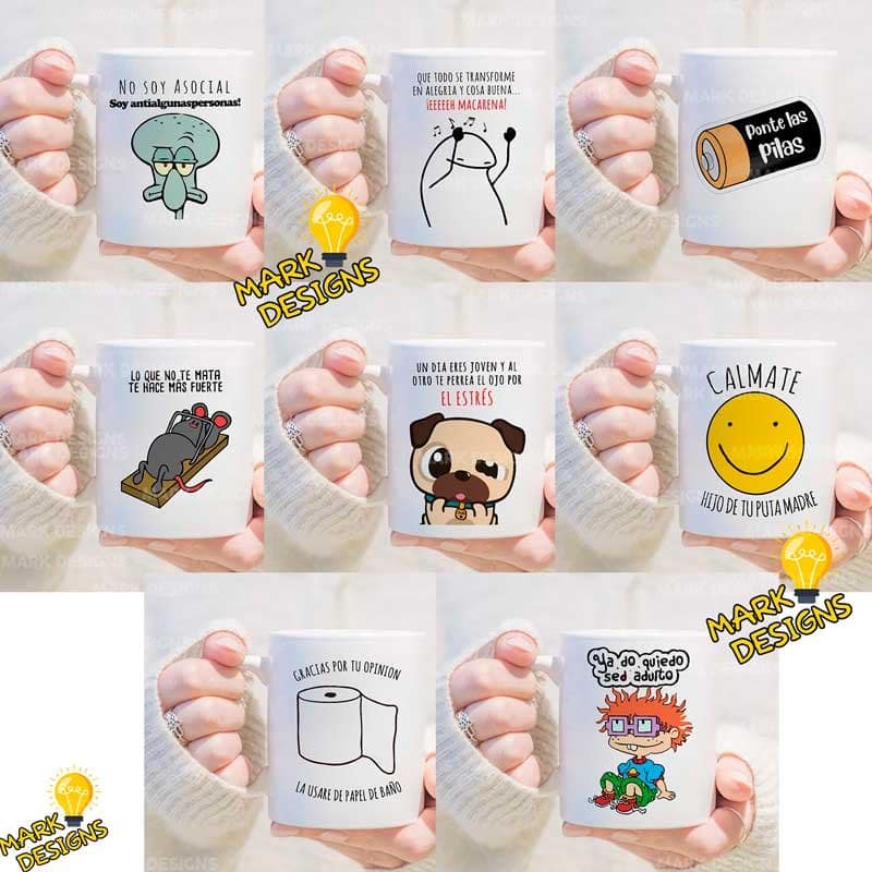 Este pack de Frases Graciosas para Tazas Editables, esta Listo para Imprimir y Sublimar. Estos diseños para tazas esta dedicado a las personas que se dedican a la sublimación, personalización de tazas y/o están por empezar en el negocio de la sublimación. Además no hace falta ser un experto en edición; ya que solo tiene que Descargar, Imprimir y Sublimar. Diseños Exclusivos y en Altísima Calidad.