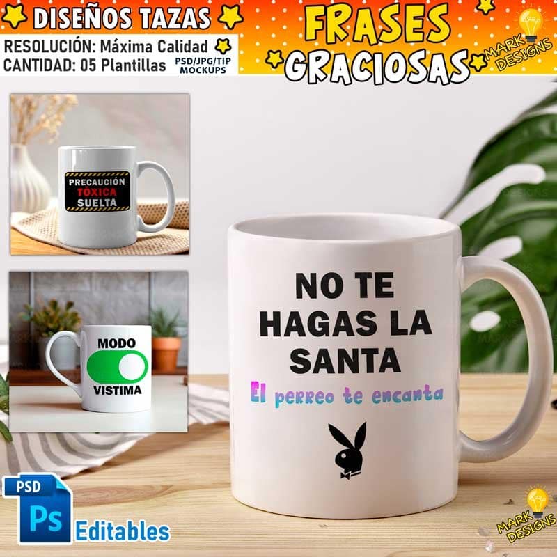 Frases Graciosas Tazas Diseños Editables, ideal para sublimar tus tazas, listas para imprimir y sublimar.