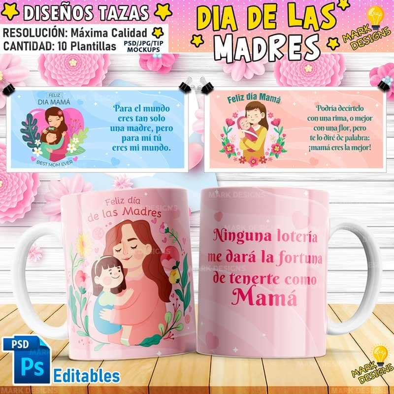 - Contenido: 10 plantillas del Día de las Madres para tazas.