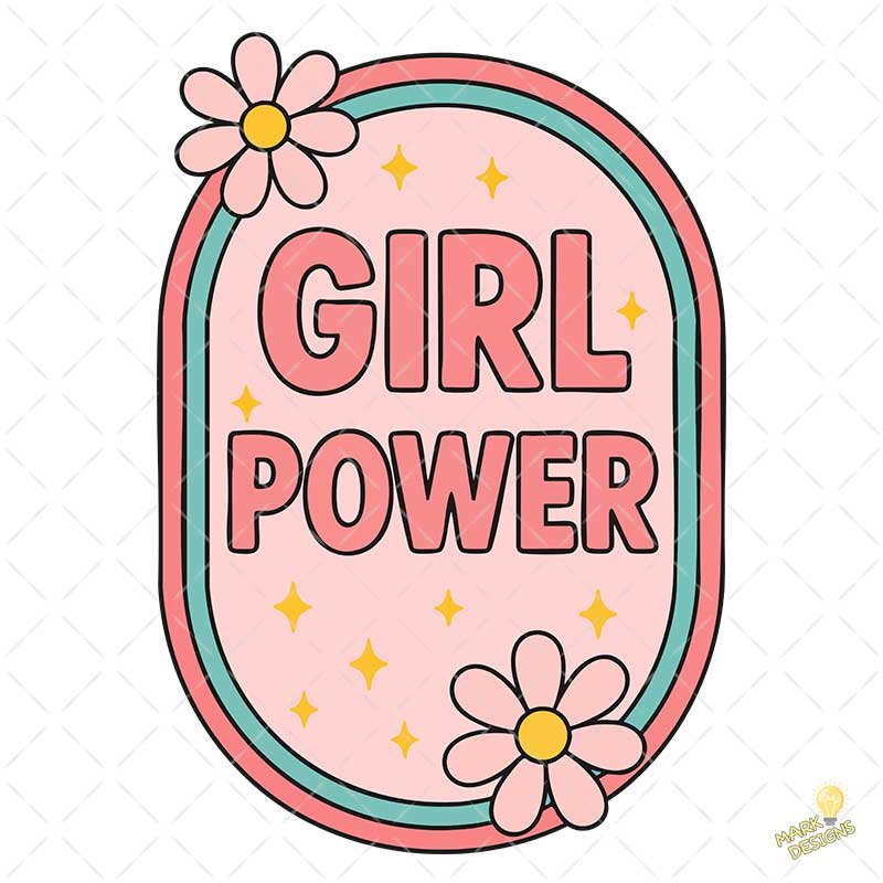 Girl Power Retro Ovalado con Flores – Diseño Vectorial y PNG 4K