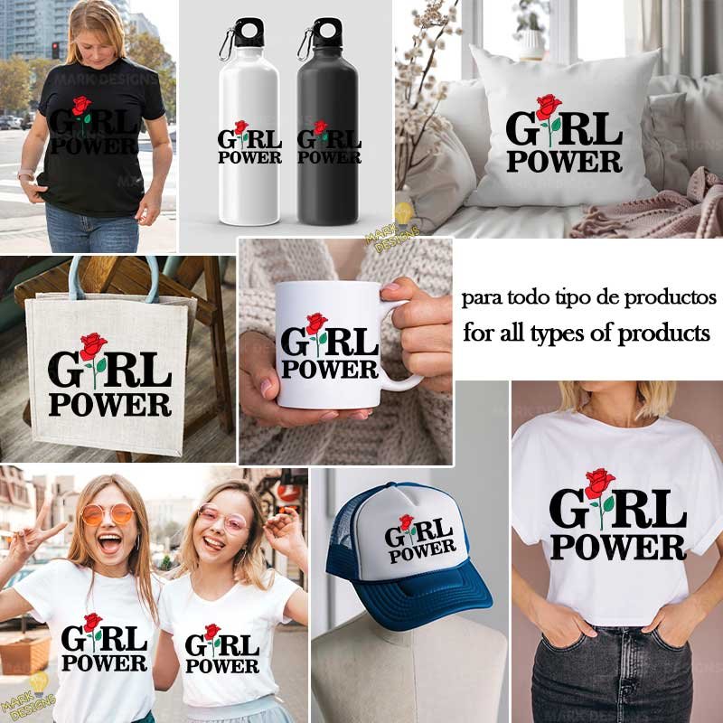 Ilustración Girl Power con Rosa – Formato AI SVG PNG 4K
