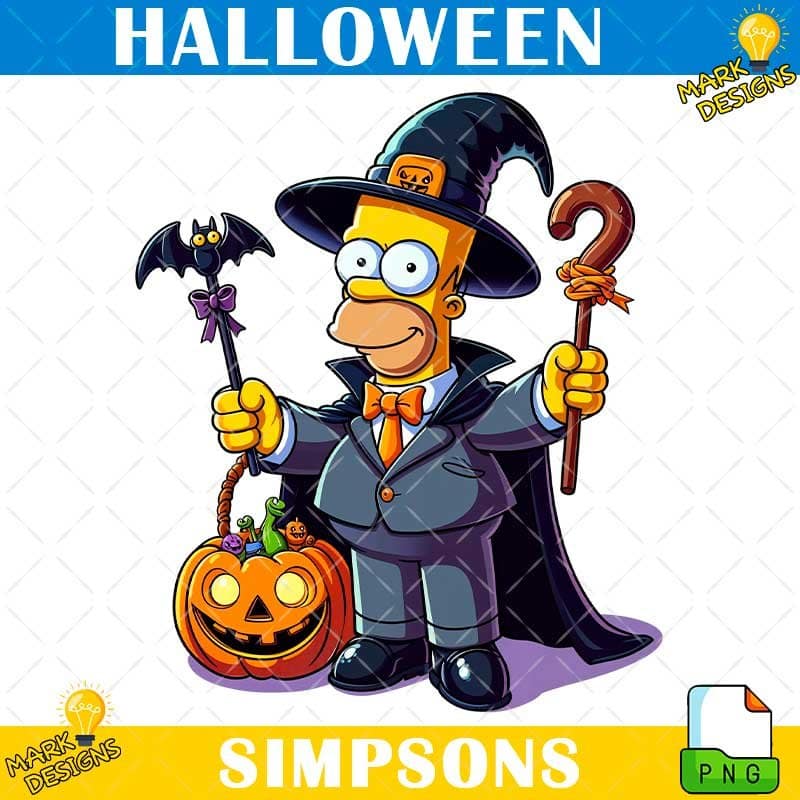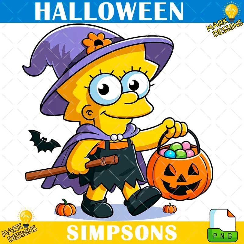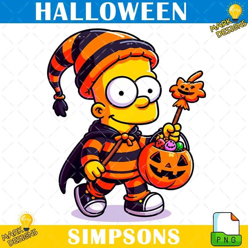 Diseños de Simpsons Halloween en Png, ideal para diseñadores, emprendedores y creativos que buscan agregar un toque personalizado a sus productos, ideal para personalizar en una gran variedad de impresiones, incluyendo: Regalos personalizados para niños, Pósters, Camisetas, Tarjetas de invitación, Stickers y pegatinas, Decoración para cumpleaños, Impresiones de pared, Tazas personalizadas y tumbler, Sublimación, Merchandising, etc. Descarga ahora estas imágenes de Personajes de Los simpsons para Halloween en png y empieza a personalizar tus productos. Estos diseños están listos para descargar, imprimir y sublimar.