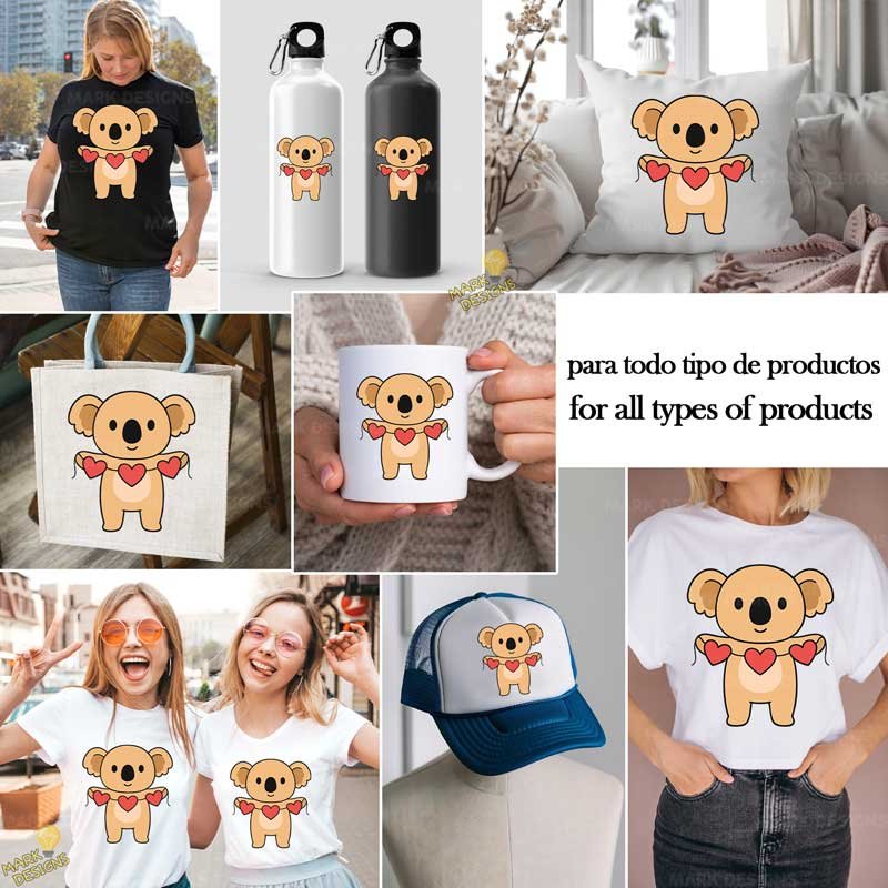 Koala san Valentín PNG ai, ideal para utilizar en tus proyectos o sublimación de tazas, camisetas, cojines, Tumblr, gorras, bolsas, termos, llaveros, mousepads, agendas, tarjetas de invitación, botellas, fundas, cuadros, posters, stickers, DTF, etc.! además están listas para descargar, imprimir y personalizar.