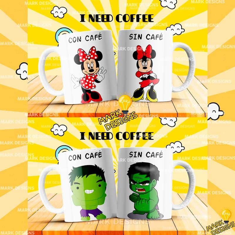 Diseños Con Café Sin Café, ideal para estampar tus tazas, listas para imprimir y sublimar.