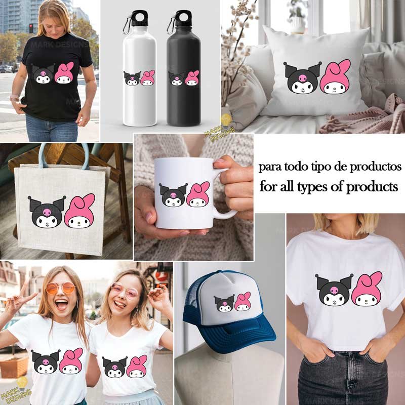 My Melody y Kuromi PNG ai, ideal para utilizar en tus proyectos o sublimación de tazas, camisetas, cojines, Tumblr, gorras, bolsas, termos, llaveros, mousepads, agendas, tarjetas de invitación, botellas, fundas, cuadros, posters, stickers, DTF, etc.! además están listas para descargar, imprimir y personalizar.