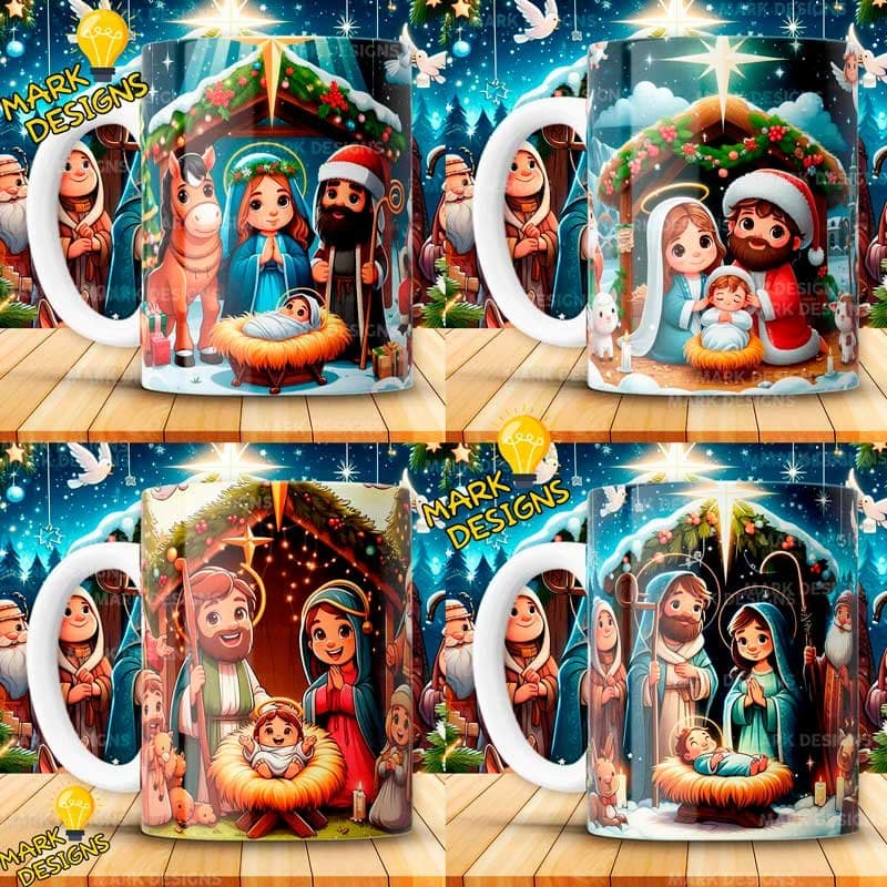 Nacimiento Cristiano Navideño Tazas, ideal para estampar tus tazas, además están listas para imprimir y sublimar.