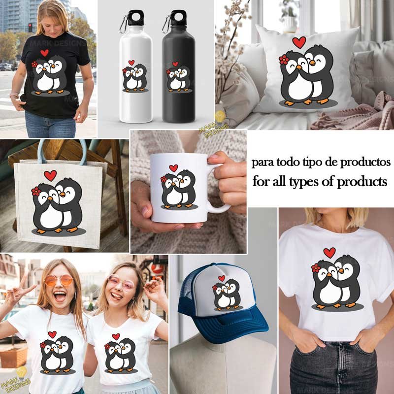 Pareja pingüinos enamorados PNG ai, ideal para utilizar en tus proyectos o sublimación de tazas, camisetas, cojines, Tumblr, gorras, bolsas, termos, llaveros, mousepads, agendas, tarjetas de invitación, botellas, fundas, cuadros, posters, stickers, DTF,  etc.! además están listas para descargar, imprimir y personalizar.