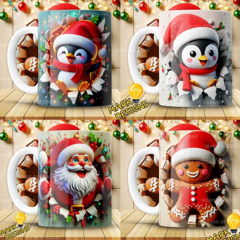 Personajes Navideños 3D para Tazas, ideal para estampar tus tazas, además están listas para imprimir y sublimar.