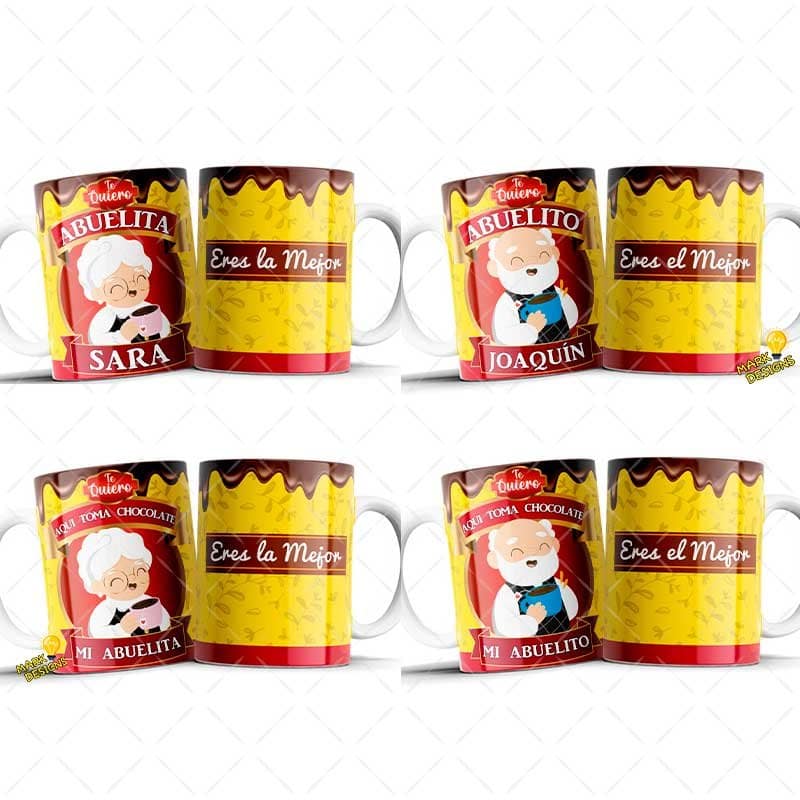 Plantilla chocolate abuelitos para tazas, ideal para diseñadores, estampadores, emprendedores y creativos que buscan agregar un toque personalizado a sus productos, ideal para personalizar en una gran variedad de impresiones, incluyendo: Regalos personalizados para niños, Pósters, Camisetas, Tarjetas de invitación, Stickers y pegatinas, Decoración para cumpleaños, Impresiones de pared, Tazas personalizadas y tumbler, Sublimación, Merchandising, etc. Descarga ahora estos diseños para tazas de chocolate abuelitos y empieza a personalizar tus productos. Estos diseños son full editables, puedes modificarle los textos y están listos para descargar, imprimir y sublimar.