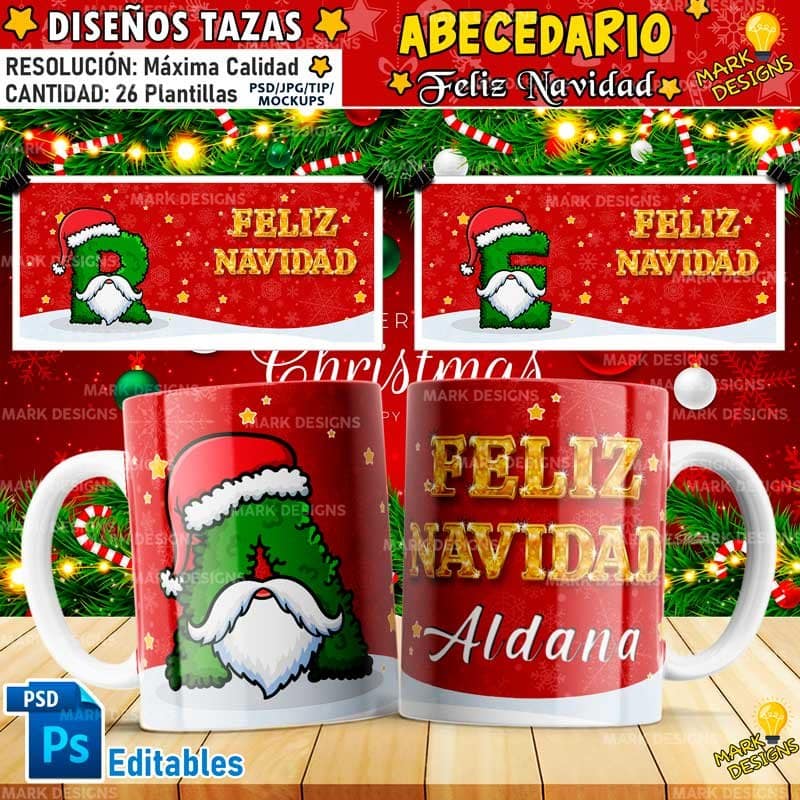 Plantillas Abecedario Navideño para Tazas, ideal para sublimar tus tazas, listas para imprimir y sublimar.